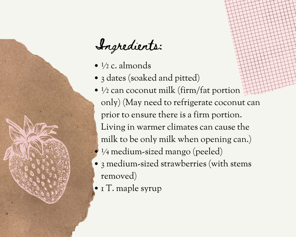Notes: May need to refrigerate unopened can of coconut milk/cream one day prior to ensure there is a firm portion of coconut cream. Living in warmer climates can cause the cream to melt, making it more like milk. Feel free to add sliced strawberries on top for garnish like shown in pictures.