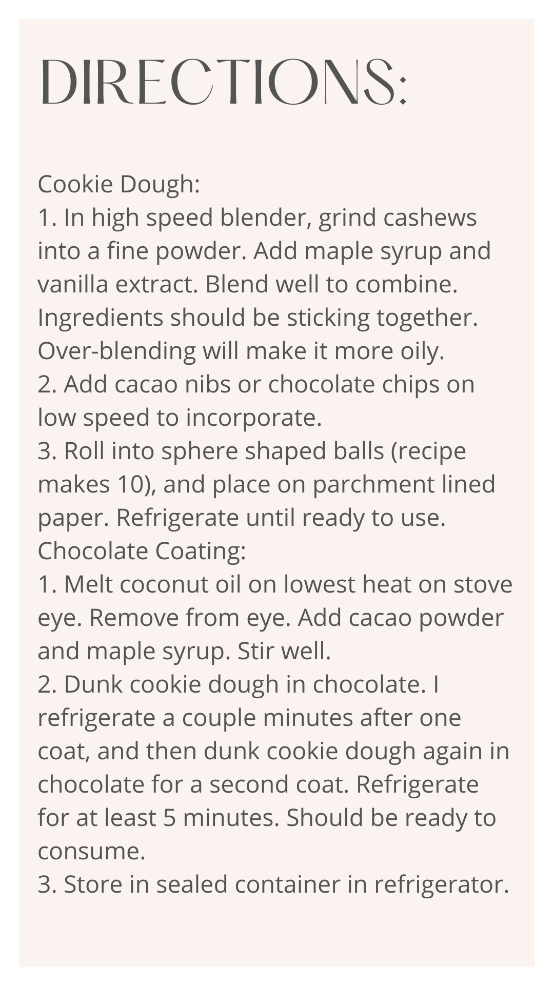This is not your usual cookie dough. No eggs. No dairy. No flour. Why call it cookie dough? I could not think of anything else to call it, and the flavor is reminiscent of cookie dough. The result is a bite sized gluten-free and vegan creation with whole foods.